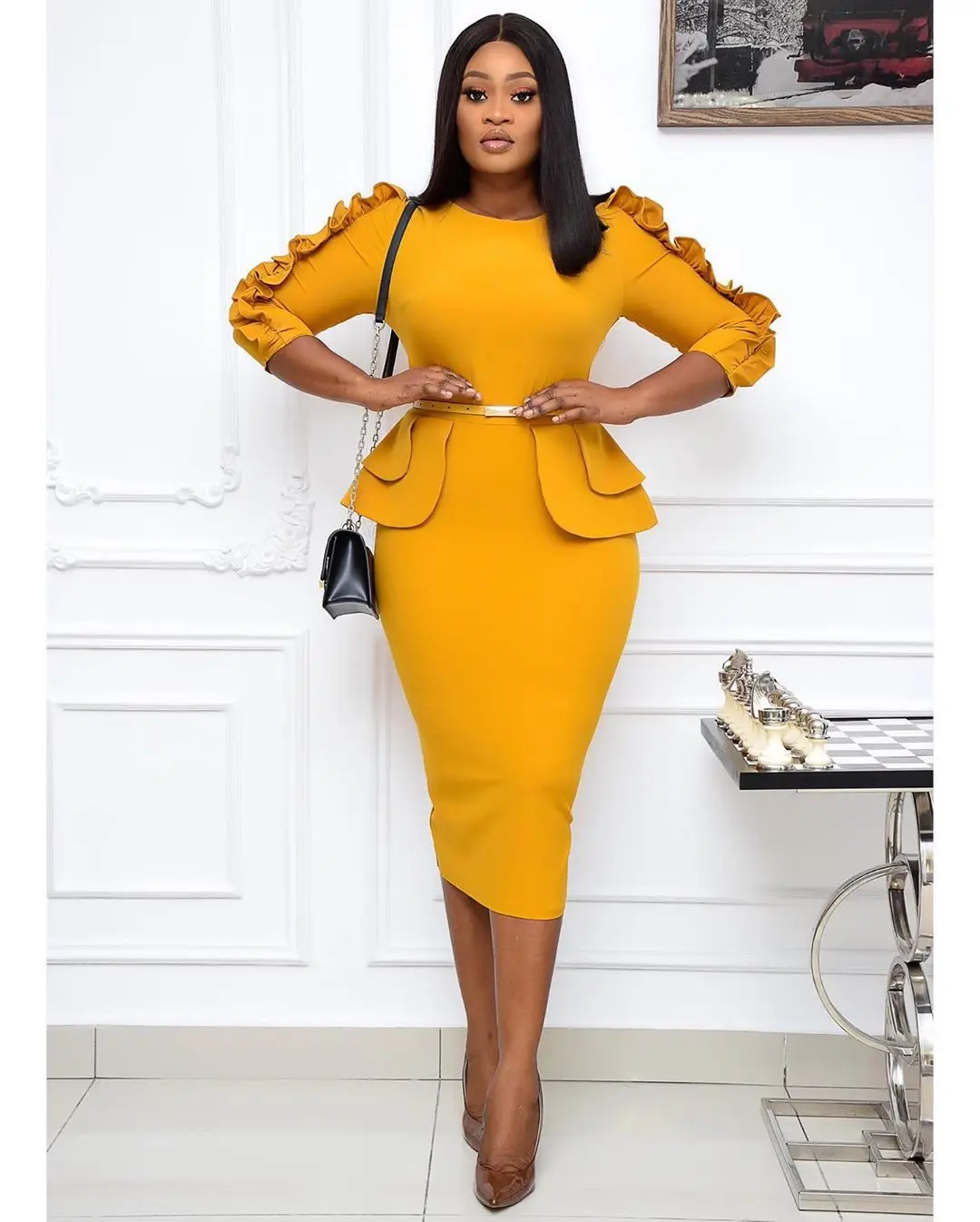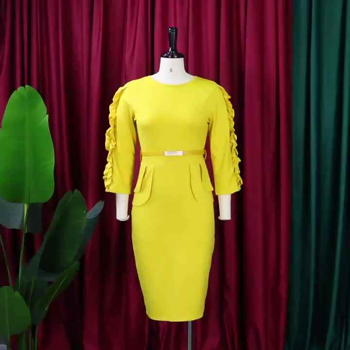 Wholesale 2022 Fall Winter Women Office Wear Work Dresses Formal Wear Oversized Elegant Elastic Ruffles African Office Career Dress Female From M Alibaba Com